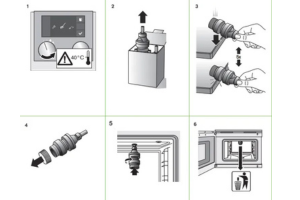 De ontkalkingscartridge wordt in de bovenzijde van de ovenruimte geplaatst, waar het systeem de ontkalkingscyclus automatisch start. Het volledige programma duurt circa 2 uur en 15 minuten. Volg altijd de instructies in de gebruikershandleiding van je oven. Belangrijk: laat tijdens het programma het afvoerfilter in de bodem van de ovenruimte zitten. Na gebruik gooi je de cartridge weg, hervullen is niet mogelijk. Zie onderstaande afbeelding voor geïllustreerde uitleg: